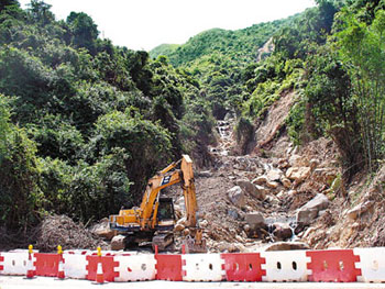 中新网2月2日电 据香港《文汇报》报道,香港去年中的世纪暴雨,引发的山泥倾泻冲毁大澳多条干道,特区政府随即以混凝土喷浆巩固工程,以便及早开放公路。