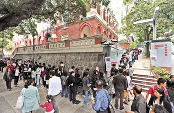 中新网2月27日电 据香港《文汇报》报道,香港裁员消息不绝,失业率持续高涨,打工仔纷为争“饭碗”奔波。26日多个机构举办三场招聘会,由劳工处青少年见习就业计划及基督教励行会合办的招聘会最踊跃,等候入场人龙一度由尖沙咀近柯士甸的会场排至佐敦地铁站,约有近600人。