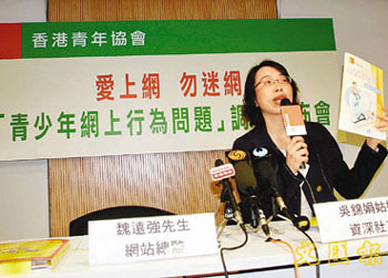 青协资深社工吴锦娟表示,青少年沉迷上网,减少了他们与家人沟通及其它兴趣的发展时间,对成长造成负面影响。她指出,青少年在网上交友,难以辨别对方的背景及企图,应避免与网友单独会面。
