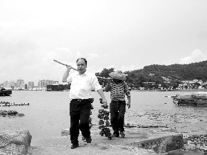 6月25日下午,站在红旗村边的海岸上,能听到对岸的鞭炮声,那是从澳门的一座寺庙里传出的。