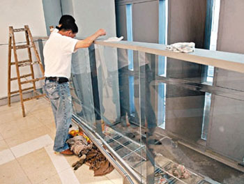 香港机场管理局早前聘请承办商进行防漏工程,工人需撬开大楼内外的玻璃幕墙旁地板,再铺以防漏漆,其中在大楼外的工程已大致完成,工人正展开楼内工序。