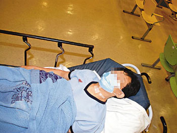 涉刺伤妻子后畏罪自杀的男子送院。(图片来源:文汇报)
