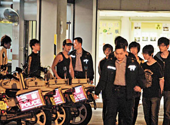 中新网3月2日电 据香港媒体报道,2名盘踞屯门友爱村的新义安黑少年,日前在蓝地遭同门毒打“教训”,其头目不甘受辱1日晚召集黑帮青年兵团准备大报复,香港警方新界北冲锋队及时赶至,当场拘捕包括18岁小头目在内25名青年男女,成功阻止一场黑帮内讧厮杀。