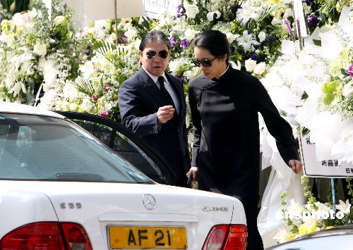 全国政协副主席霍英东的追悼会,7日上午八时半在香港殡仪馆举行,众多政府官员、商贾、著名人士到场出席,场面隆重。霍英东长子霍震霆在追悼会完毕后送前妻朱玲玲上车。中新社发 洪少葵 摄