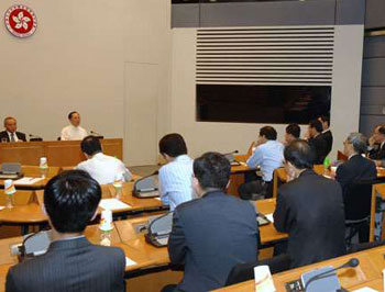 曾荫权26日在特区政府总部与20多名来自各大院校不同范畴的学者会面,出席者有香港科技大学经济学系教授雷鼎鸣、中文大学政治与行政学系副教授马岳、岭南大学公共管治研究部主任李彭广、城市大学专业进修学院学术统筹宋立功、理工大学土木及结构工程系副教授熊永达、港大教育学院助理教授张国华等。