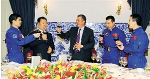出席晚宴人士还包括航天勇士翟志刚、刘伯明、景海鹏,国务院港澳事务办公室副主任、副团长华建,国家载人航天工程总设计师、副团长周建平,国家载人航天工程办公室主任、副团长王文宝,航天科技集团公司副总经理、副团长袁家军,国家载人航天工程国际合作部部长、代表团秘书长宇建国,中联办副主任徐泽,外交部驻澳特派员公署特派员卢树民,解放军驻澳部队司令员王玉仁,澳门立法会主席曹其真,终审法院院长岑浩辉。