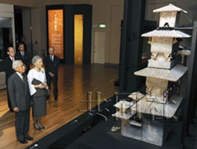 中新网7月15日电 据日本共同社报道,日本天皇夫妇14日在东京国立博物馆参观了名为“诞生!中国文明”的展览。该展览主要展出了中国河南省的出土文物。青铜饰板等珍贵文物吸引了天皇夫妇频频驻足观看。
