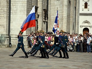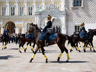 自2005年起,在气候转暖的4-10月,每逢周六中午克里姆林宫前就会进行总统卫队步兵和骑兵的换岗仪式。其中,每月的前三个周六在克里姆林宫广场进行,剩下的在红场进行。(梁旭)