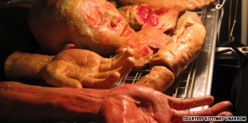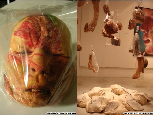 2008年,凯迪瓦特在他的“身体和死亡”展览会上,考出了“新鲜头颅”面包。这种面包闻起来美味,吃起来感觉奇异。(沈姝华)