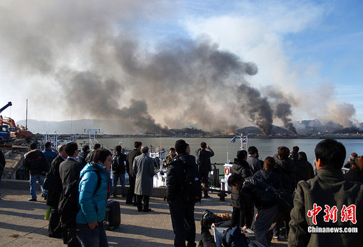 朝鲜与韩国23日在西部争议海域发生炮战,延坪岛上居民遭受炮弹袭击,数十栋房屋起火。此前海军陆战队曾通报说,朝鲜发射的海岸炮击中施工现场,当时在场的12名工人中有2名失踪。此次发现的两具尸体正是这2名工人,其中一具尸体被火烧坏下肢,另一具全身严重毁损。