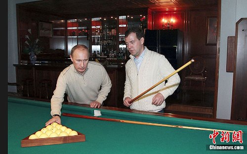 中新网12月6日电 据路透社报道,俄罗斯总统梅德韦杰夫和总理普京3日晚在南部度假城市索契上演了一出令人诧异的“兄弟情”。两人不但一起打台球、看电影,甚至还都穿上了一件米色的毛衣。