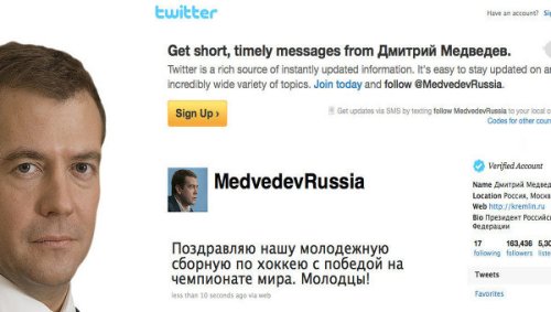 据悉,梅德韦杰夫还在微博中不断扩大自己的交往圈子,一开始就把推特创始人埃文·威廉姆斯与比兹·斯通加为好友。随后又将美国总统奥巴马和加拿大总理哈珀加为好友。