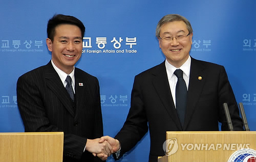 中新网1月15日电 据韩联社报道,韩国外交通商部长官金星焕与到访的日本外相前原诚司15日下午举行会谈,并在会后召开联合记者会介绍了会谈成果。