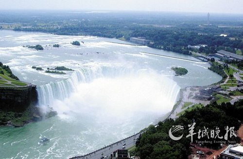 尼亚加拉瀑布位于加拿大和美国交界的尼亚加拉河中段地区,有着世界七大奇景之一的美誉,与南美的伊瓜苏瀑布及非洲的维多利亚瀑布合称世界三大瀑布。它以宏伟的气势,丰沛而浩瀚的水汽,震撼了所有的游人。从伊利湖滚滚而来的尼亚加拉河水流经此地,突然垂直跌落51米,巨大的水流以银河倾倒之势冲下断崖,声及数里之外,场面震人心魄,形成了气势磅礴的大瀑布。高特岛(Goat Island)把瀑布分隔成两大部分。较大的部分是霍斯舒(Horseshoe)瀑布,靠近左(加拿大)岸,高56米,曲折的脊线长约670米。较小的是亚美利加瀑布接邻右(美国)岸,高58米,宽320米。“尼亚加拉”在印第安语中意为“雷神之水”,印第安人认为瀑布的轰鸣是雷神说话的声音。