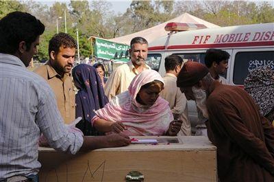 4月21日,在巴基斯坦首都伊斯兰堡附近,遇难者家属在辨认尸体。新华社发