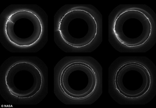 这些照片是由NASA土星探测器“卡西尼”号拍摄的。照片显示,不明物体撞向土星外层的F光环,并从中穿过,给F光环留下了明显的“伤疤”。