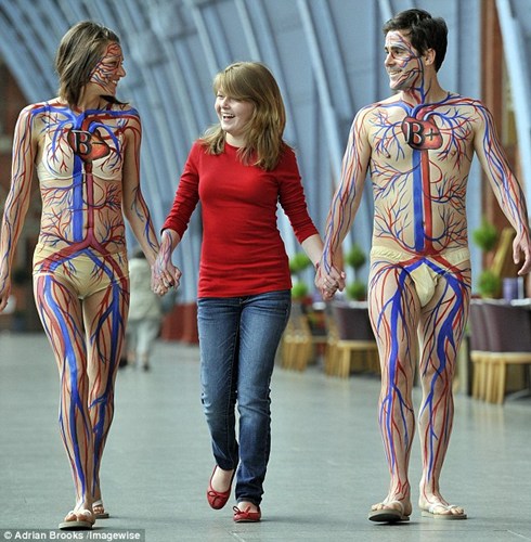 这群志愿者仅穿裸色内衣,在全身画上动脉静脉血管,并在胸口写上血型。报道指,志愿者意在引发人们献血的积极性。虽然当天下起小雨,但志愿者仍撑伞前进,并与普通民众合影。