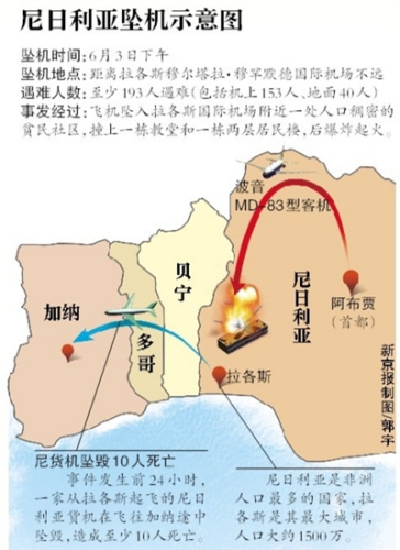 尼日利亚一架客机3日在拉各斯机场附近坠毁,机上153人全部遇难,并造成地面至少40人死亡。其中至少有6名中国乘客,但6名遇难者遗体目前尚未找到。