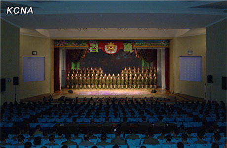 演出慷慨激昂地讴歌对朝鲜革命武装力量最高司令官金正恩的无比敬仰,并代表全体人民军官兵的火热忠心,向金正恩致以最大的光荣和热烈的祝贺。