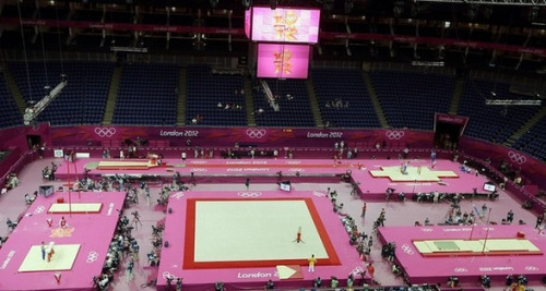 奥运会体操赛场主色调却由常见的蓝色改成此次奥运会的主色调亮粉色。对电视转播来说,这个大胆的色彩在镜头里看起来很绚丽很漂亮,但很多选手表示不适应。