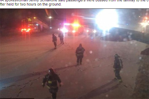 美一客机降落时在结冰跑道上侧滑,工作人员营救。(网页截图)