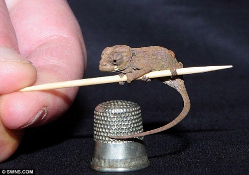 这只三角变色龙体长仅3厘米,是该物种首次在英国诞生。