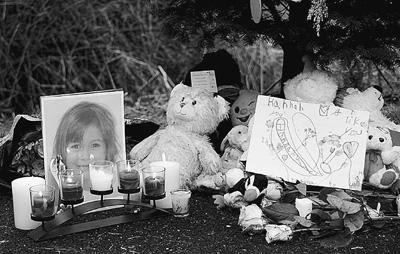 汽车刚刚进入纽敦小镇的桑迪胡克社区,记者就看到了20多个手捧蜡烛的白色“天使”站立在路边。他们身上插着金色的翅膀,但脸上没有表情。纽敦镇的多数孩子18日大都返回了学校,记者在采访中看到了数十辆黄色的校车在特殊通道上行驶。虽然小镇竭力让生活回到正常的轨道,但人们的心情在频繁的悼念活动中难以平复。圣露丝利马教堂正在为两名遇难学童举行葬礼。在孩子的照片上,依然可见其灿烂的笑容(见图,本报记者丁小希摄)。