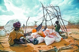 很多难民都是徒步穿越危险的地区前往达达布难民营的,在通过注册后,难民们可以领取21天的口粮。据统计,每天平均大约有300位难民来到达达布难民营。