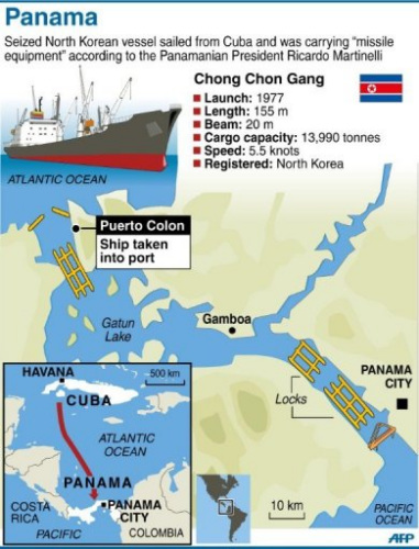 巴拿马官员说,如果船载货物的确包含导弹材料,那么它很可能违反了联合国对朝鲜的制裁。