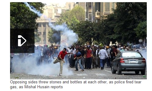 埃及官方通讯社报道,安全部队开始在开罗两处穆尔西支持者的营地开始清场行动。一架军事直升机盘旋在支持者们位于开罗东北部的拉拜阿·阿达维亚的静坐营地上空,空气中弥漫着浓重的催泪瓦斯。