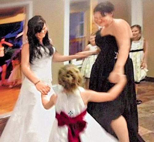 阿曼达(图左)穿着甘迪丝(图右)的白色婚纱,顺利完成婚礼。图自台媒
