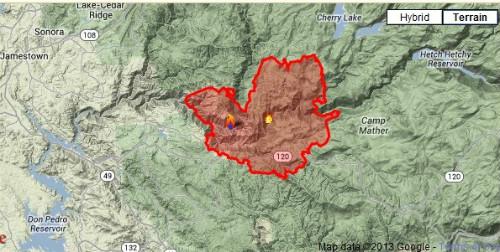 美国加州州长布朗8月22日宣布该地区所在地图奥勒米县(Tuolumne County)进入紧急状态。大量游客及居民撤离。当地政府建议位于Pine Mountain Lake的夏季度假社区的2800位居民自愿疏散。大火还没有燃至Groveland,该地区距离旧金山东部有120英里。