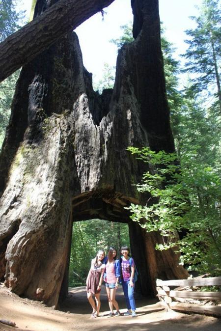 胜美地国家公园还有三个巨大的巨杉树林,千年古木参天,蔚为奇观。(韩莎莎摄)