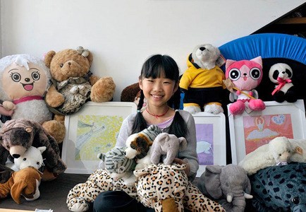 图为“日中的未来百名儿童写真展”展出的北京一名女孩的照片。(共同社)