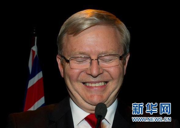 9月7日,在澳大利亚布里斯班市,澳大利亚总理、工党领袖陆克文在工党集会上发表演讲,并承认工党在当日举行的澳大利亚联邦议会选举中失败,他同时向对手、自由党-国家党联盟领袖托尼·阿博特表示祝贺。新华社发(白雪摄)