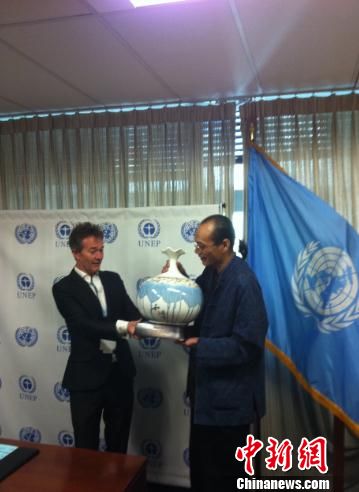 联合国环境署颁地球卫士奖 中国画家打造精美奖杯