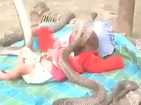 四条眼镜蛇警戒盘绕婴儿身 “守护”其午睡(图)(2)
