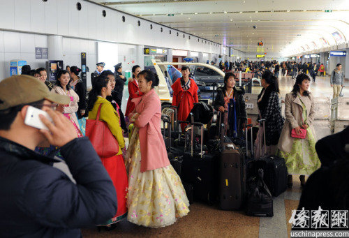 朝鲜平壤艺术团“神秘”现身北京机场航站楼(图)