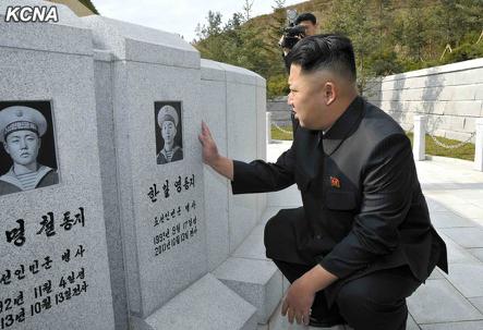 金正恩看着牺牲烈士的遗像说,石板遗像做得很好。