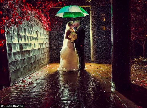 坏天气的婚纱照:新婚夫妇风雨中浪漫拥吻(图)