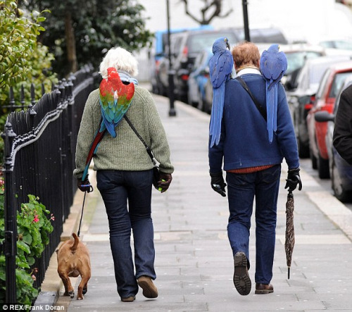 英国夫妇在高档区“遛鸟” 三只鹦鹉肩上呆(图)