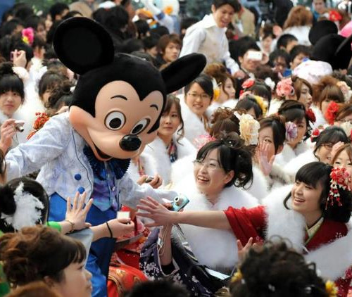 东京迪斯尼乐园所在的千叶县舞浜市,按照惯例依然在迪斯尼乐园为该市的年轻人举行成人仪式。