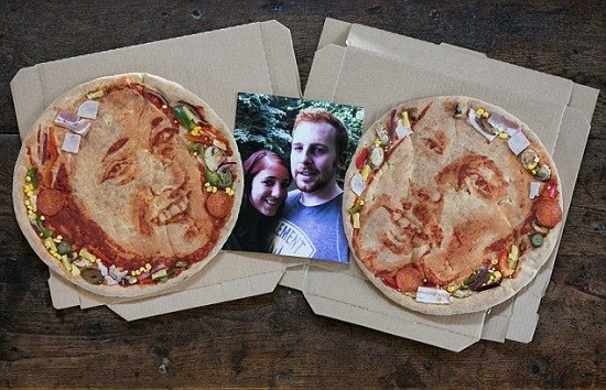情侣婚礼在披萨饼上印彼此肖像 留温馨回忆(图)