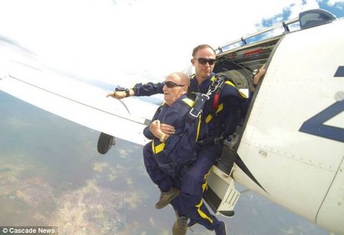 93岁老翁高空跳伞 称受已故老伴托梦激励(组图)