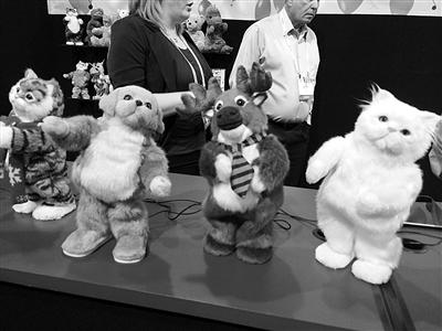 如果事前不知情,走过这个摆放有猫猫狗狗毛绒玩具的展台时,参展者常常会被它们的突然放声歌唱吓一跳。这些小东西两脚站立,嘴唇一开一合唱着《爱的小屋》,外观也算得上“萌”。但对于来朝圣未来电子产品大趋势的成年人来说,一只唱歌的绒毛麋鹿,除了有些诡异之外,着实无聊透顶。