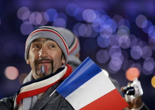 法国一名运动员的胡须上染了国旗的三种颜色。