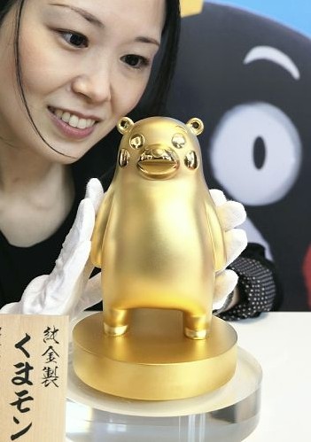 日本熊本县为吉祥物庆生 近亿日元纯金模型亮相