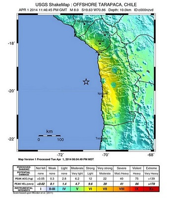 当地时间4月1日晚8点49分,里氏8.2级地震袭击了智利北部附近海域