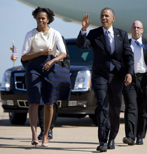 奥巴马携妻外访遇大风 绅士帮妻手捂长裙(组图)(3)