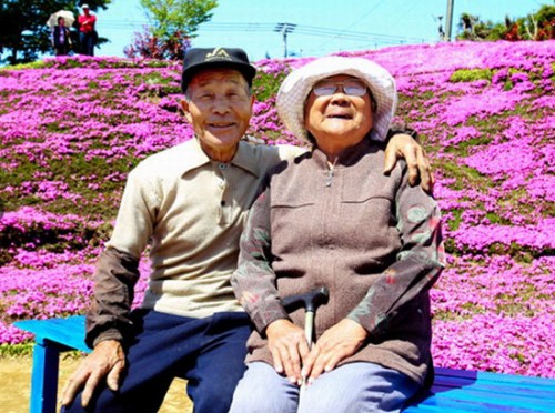 日本老人栽种花海 鼓励失明妻子活下去(组图)